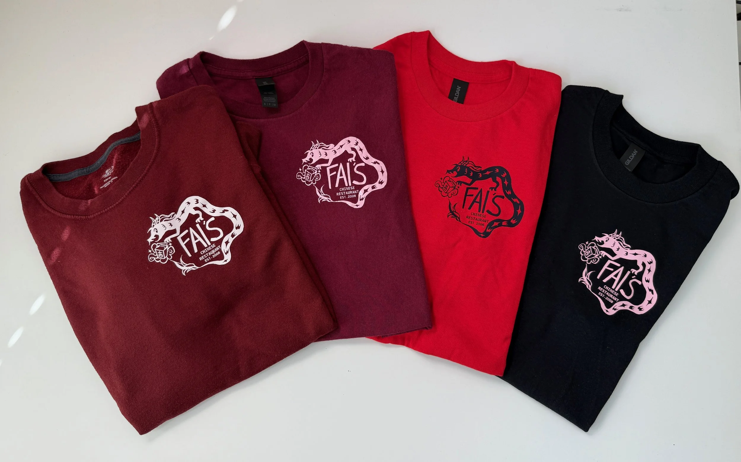 I had the amazing opportunity to design customer merchandise and menu covers for Fai’s Chinese Restaurant! Shirt designs were made with Adobe Photoshop and Cricut.